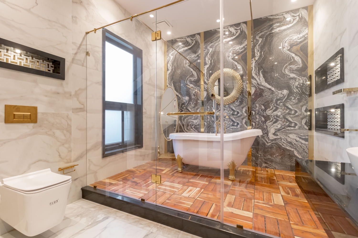 All 6 no s bathrooms have Turkish Spanish tiles of high quality. All bathroom shower accessories are from Kale Turkey. All bathroom vanities are prepared from Corean & Corean fittings inside the bathrooms.